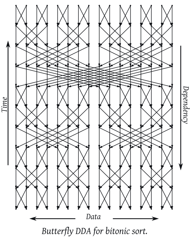 Reusability: The Butterfly pattern, used as an example here, appears in many divide & conquer algorithms, sorting networks and signal processing problems. The same DDA and embeddings can be reused for many computations, only the expressions differ.