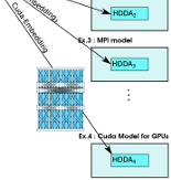 Embeddings are high-level and controlled by DDA projections, usually short, reusable code snippets. The extra detail in the example shows the Bitonic Sort DDA embedding onto CUDA.